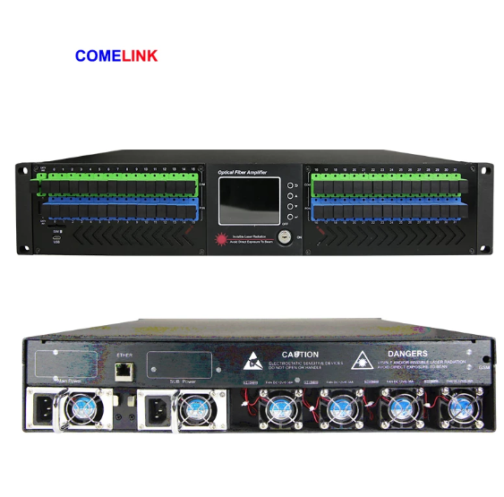 The COME-56Axx series high power amplifier is a high power multi-output optical fiber amplifier with a gain spectrum bandwidth of 1535~1565nm. It is mainly designed for CATV or 1~8 continuous strip channels (ITU wavelength) applications. It provides a flexible, low-cost solution for large-scale FTTH coverage of CATV systems in large and medium-sized cities.