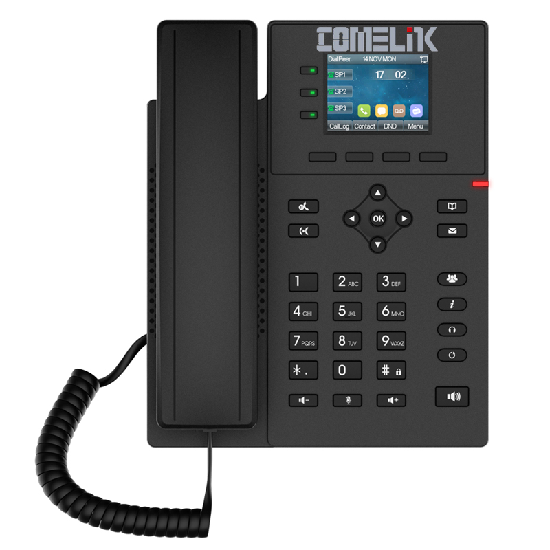 COME303x is the cost-effective color screen IP phone with high performance specially for enterprise. It features a 2.4-inch 320x240 pixel color screen, supporting 4 SIP lines and local 6-party conferencing to render a user-friendly experience. COME303x has rich functions such as HD audio, providing an efficient and high-quality business communication experience for enterprises.